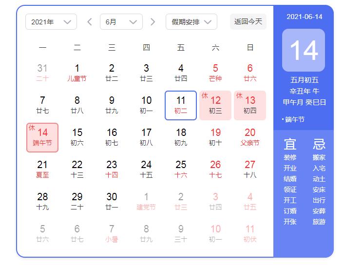 根據國務院辦公廳通知精神,現將2021年端午節放假安排通知如下:6月12日(星期六)至14日(星期一)放假,共3天。